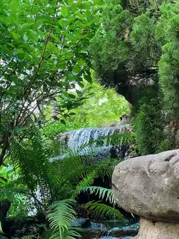 The shrine’s architecture reflects traditional Chinese design, with intricate carvings, red walls, and green tiles, creating a harmonious blend with the surrounding gardens.