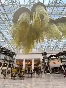 [Laugh] When you step into the Global Center, you will be shocked by the 30-meter-high glass dome. The sunlight shines through the dome onto more than 1,500 brand stores, ranging from international light luxury to domestic new trends. Even better, the building itself is a work of art: the streamlined facade surges like silver waves, and the atrium hangs a giant installation "Blooming" by artist Xu Liaoyuan, making you feel like you are in a modern art gallery while shopping.