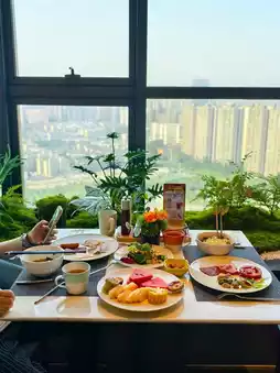 Breakfast is served at the restaurant on the 31st floor. The spicy and fresh aroma of Dandan noodles and Zhong dumplings awakens your taste buds. There are both Western and Chinese dishes.
