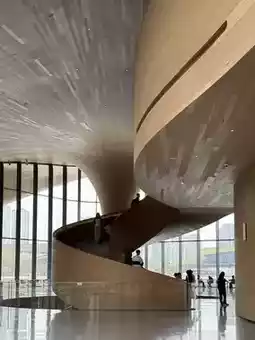 Opened in 2021, the museum’s architecture is inspired by the hibiscus—the city flower of Chengdu—with a striking petal-shaped roof that blends beautifully with the natural surroundings. Covering nearly 40,000 square meters, the museum features 13 exhibition halls, along with educational spaces, a lecture hall, and an art library.