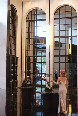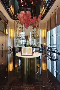 1️⃣ The 38th-floor hibiscus flower installation