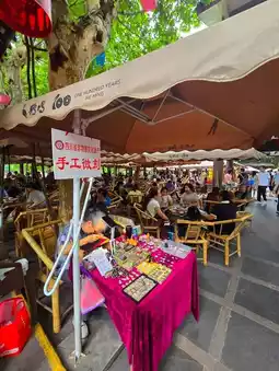 There are also a lot of entertainment activities in the park, including children's playgrounds, artificial lake cruises, singing and dancing performances by citizens and groups, and a market consisting of various stalls, where snacks, teas, and cultural and creative handmade products can be found. The blind date corner where parents exchange marriage information for their single children is also a major feature of People's Park.