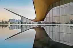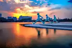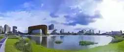 ▫️Tianfu Art Park resembles a cyan-dyed silk ribbon: the waterborne art museum's reflections shatter cloud wisps, while by the lakeside library's floor-to-ceiling windows, the bronze sculpture "Hibiscus in Bloom" exchanges morning greetings with gliding black swans. (The warmth of Universiade art installations still lingers🌱)