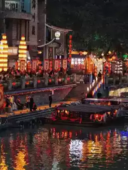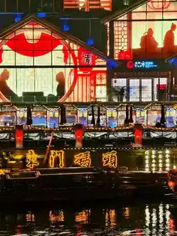 Nearby, riverside teahouses and izakayas began to glow, spilling soft music and clinking glasses into the night. Locals gathered over skewers and cold beer, while couples leaned over the rails watching boats drift by. The Dongmen Bridge area was calm yet alive a perfect summer blend of tradition, nightlife, and water-lit beauty. 🍢🎶🕯️