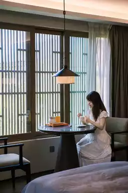 Spent a night at Banyan Tree Wenjiang with my besties over the weekend and was completely won over! The hotel features Western Sichuan residential style, and the rooms are full of design flair. The natural wood tones paired with cotton and linen materials make you feel relaxed the moment you step in.