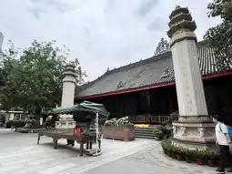 ⛩️ The temple’s elegant wooden architecture, red walls, and tranquil courtyards reflect classic Chinese aesthetics. Incense wafts through the air as local devotees and curious visitors walk silently past solemn halls and centuries-old statues.
