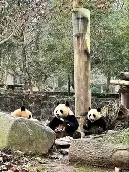 Visitors can stroll on leafy trails to see pandas of all ages play, rest, eat bamboo, or interact during feeding times (best in the morning) .