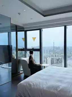 Previously stayed near Wangping Street, but this time chose Tianfu Square area after discovering great-value S High Altitude Hotel🏨 Near Jinjiang Hotel subway station with convenient access + amazing city views overlooking Renmin South Road and Tianfu Square. Our suite was spacious with 2 rooms for 4 people – only ~200/person!