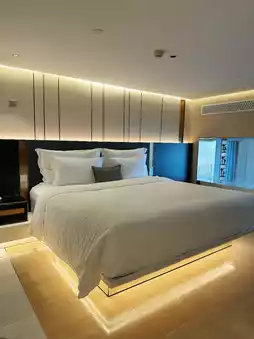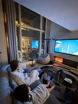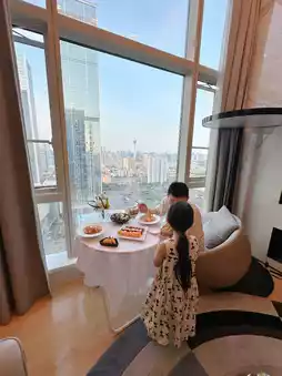Perfect for families or group trips! The room is super spacious, with ample space in both the living area and bedroom. Featuring a 2-meter king-size bed and dual bathrooms, it's comfortable whether you're traveling with kids or friends. The 5-meter floor-to-ceiling window offers a direct view of Taikoo Li, allowing you to lie back and enjoy the bustling nightscape. Enhanced with a 3D naked-eye screen, the visual experience is absolutely stunning—it's like falling asleep with Taikoo Li as your pillow💤.