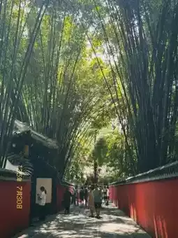 Tucked away in a bustling corner of Chengdu, Du Fu's Thatched Cottage 🏡 is surrounded by bamboo forests and gurgling streams, creating a tranquil and secluded retreat. A vermilion wall winds its way through, swaying bamboo shadows outside and ancient cypresses within. The scenery changes with every step, brimming with poetic beauty.