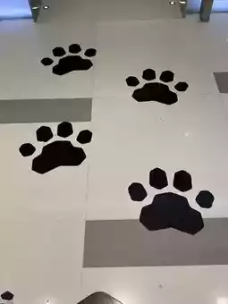 Inside the IFS mall, giant black panda paw prints lead the way to elevators that take you to the rooftop garden.