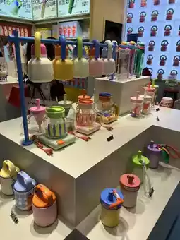 When talking about the hottest water bottle shop of the year, you can't go past Chako Lab, a famous Chinese shop with cute and eye-catching colors and super cute color combinations. We happened to be in Chengdu, so we stopped by this branch located in Dongjiao Memory (or Dogjiaojiyi), a popular shopping area for Chengdu's youth. The store isn't very large, but it stocks every model and color. Before we left, we had already been eyeing the Linlin Pot, which looks like a dumbbell. But then we came across another model we liked, the BoBo, which was so cute we ended up buying two. I have to say, the prices in China are much better than in Thailand, almost 400 baht cheaper than those sold in resellers. This branch even includes a free straw cleaner.