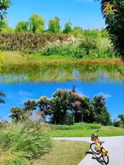 I originally planned to visit the Egret Bay Wetland Park. After taking a taxi to the destination, I found the park to be quite large, so I rented a shared bike. As I rode along, I discovered that this bike path was free of motor vehicles and pedestrians, catering exclusively to cyclists. If you need to take a break, you must leave the greenway and rest at nearby pavilions or benches. The scenery on both sides of the greenway was stunning, and I noticed the words "Tianfu Greenway" written on the ground. Curious, I looked it up online and learned that the Tianfu Ring Cycling Greenway spans 100 kilometers.