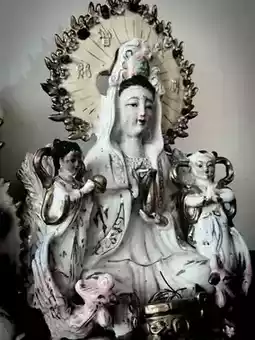 In the Guanyin Hall, Avalokitesvara Bodhisattva sits upright on a lotus pedestal, brows lowered, his demeanor serene. The dim light within the hall lingers, and the lingering incense mist reflects his compassion, gradually bringing peace to the heart. Believers clasp their hands or whisper prayers, bringing with them worldly sorrows, yet find a sense of coolness in the Bodhisattva's compassionate gaze.