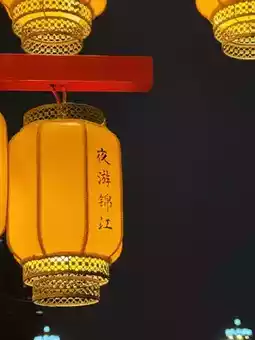 The bridge's eaves, the exquisitely carved railings, stand out against the night sky. Red lanterns hang high, their reflections blending with the rippling water, suffusing the entire Jinjiang River with a warm glow.