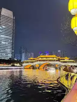 This famous ancient bridge is located in the heart of Chengdu, China. It spans the Jinjiang River and is a beautiful architectural landmark, reflecting Sichuan's rich history and culture. Highlights of this bridge include its traditional Chinese architecture, traditional roofs, and restaurants and cafes located on the bridge and along the waterfront, making it a popular tourist destination and a romantic nightlife destination.