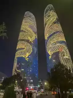 A must-visit for anyone traveling to Chengdu! 🇨🇳 The Twin Towers are a symbol of the city's modernity that you simply have to see for yourself. During the day, they look grand and imposing, but at night, the LED lights illuminate both towers, creating a breathtakingly romantic scene. ✨