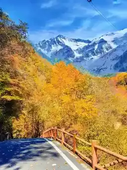 Highlight: This is the closest natural viewing platform to Gongga Snow Mountain! In autumn, one side is fiery red and yellow colorful forest, the other is the cold and majestic silver-white snow mountain—a stunning contrast.