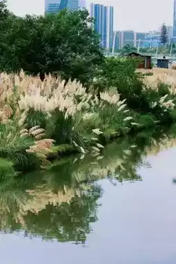 Reed flowers sway gracefully on the riverbank, accompanied by the autumn water and vast sky. Their reflections ripple gently in the water, intertwining with Butterfly Bridge and the warm sunlight to form a vivid park city painting.