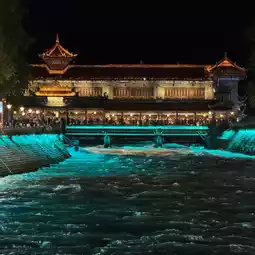 Dujiangyan Namqiao is a magical place at night! The river, which looks green in person, transforms into a mystical blue when captured on a phone photo – a truly magical experience. 🌊