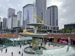 The surrounding atmosphere is lively, with lights, fountains, and gardens. The area is bustling with shopping malls and museums, attracting a large number of visitors. Additionally, the streets opposite Tianfu Square are lined with street food vendors, making it a delightful experience to stroll around the square while savoring Chinese street food—a truly relaxing and enjoyable way to explore.