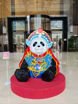 Step into Chengdu Marriott Hotel Financial Centre and you’ll be greeted by a giant panda sculpture in traditional attire—a whimsical, insta-worthy welcome that perfectly blends Chengdu’s playful spirit with striking modern architecture. 🐼✨ The hotel’s sleek glass lobby glows against the city’s night skyline, making it a must-snap spot for both family travelers and urban explorers.