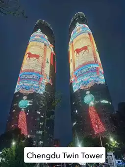 - In the evening, admire the lights at the Chengdu Twin Towers. We recommend coming around 8:00 PM.