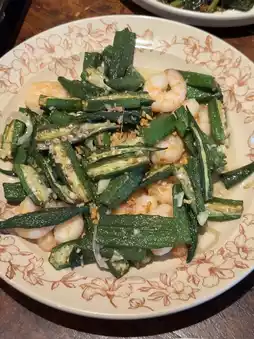 • Okra with Shrimp 🍤: Refreshing and light, with tender shrimp.