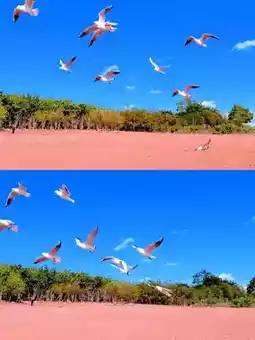 ✨Features: Light pink sand beach, excellent for aerial photography and photo opportunities.