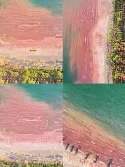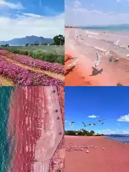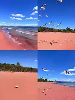 Dreamlike pink sands! Under sunlight, the grains glow red against blue waters โ pure magic for your inner child ๐!