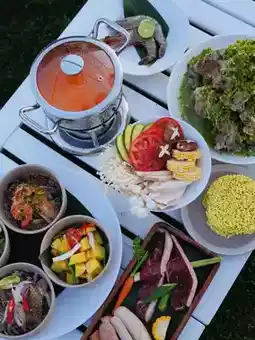 🍽️ Eat: Shuxi Lakeside Bistro (must-try volcanic ribs, tangy and flavorful, lemongrass pork neck, and Thai basil pork with potato rice), dining on the outdoor terrace while watching the sunset 🌅 creates a romantic atmosphere