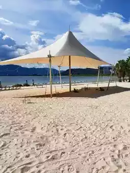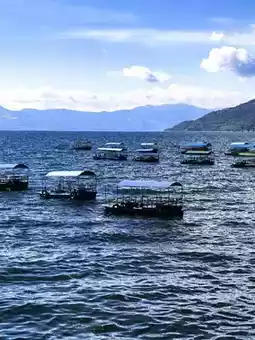 White sandy beaches, coconut groves, and flower seas make this place known as Fuxian Lake’s "Little Sanya." The 30 RMB entrance fee can be used for in-park purchases. Lying on white lounge chairs feels like being on a tropical seaside.