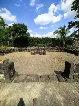 Meilang Village is simple and quiet, with dense betel nut and coconut trees at the entrance. Despite the scorching sun, stepping into the village brings a refreshing coolness. The Meilang Twin Pagodas are an important part of the "Jirui Nunnery" in Meilang Village. The ruins of this nunnery are located in the southeast of the village, where Chen Nv Shanchang (the person commemorated by the sister pagoda) became a nun and practiced Buddhism. Interestingly, legend has it that after Chen Nv ascended to immortality, the place was renamed "Xianshou Nunnery," meaning "Nunnery of Immortal Longevity." Xianshou Nunnery faces northeast to southwest. The original buildings have been destroyed, and only the foundations of the nunnery and the remnants of the main hall remain. The site is small, with stone stele bases and other architectural remnants scattered around. The remaining stone structures may date back to the Song to Qing Dynasties.