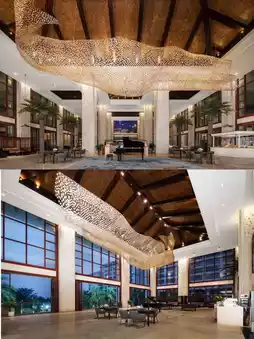 🌸Hotel Introduction: The hotel is located in Yingbin Peninsula, Laocheng Economic Development Zone, Hainan Province, which is the extension of the "Golden Coastline" on the west coast of Haikou. It is known as Haikou's "Yalong Bay". It is surrounded by the sea on three sides and shaped like a crescent moon. The shore has a wide and soft sandy beach without mud, clear blue water, inner and outer double bays, and scarce volcanic hot springs on the island. With fresh air and steaming hot springs, it is a natural bathing beach comparable to Hawaii.