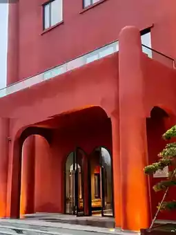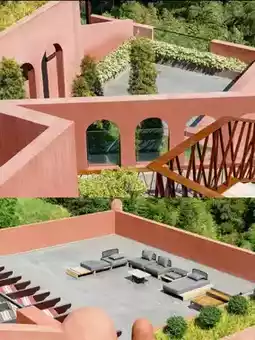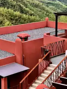 The whole homestay is gray-red, and it is particularly eye-catching in a lush forest🏠