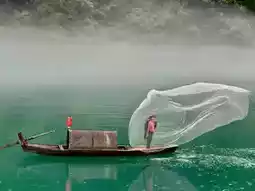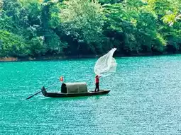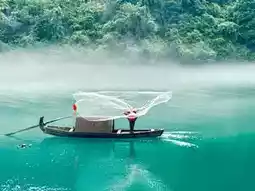 The air quality index at Dongjiang Lake in the morning is absolutely fantastic—a natural oxygen bar. Watch the fishermen cast their nets on time, take a leisurely stroll, and as the mist clears, you'll be greeted by bright sunshine and a stunning blue lake. After exploring Xiaodong River, head to Dongfanghong to try their salmon—you'll regret not eating more! Next, visit Chenzhou's version of Erhai Lake, where you'll find breathtaking views of blue skies and vast waters. The refreshing breeze is incredibly soothing, and whether you're riding an electric bike or driving along the coastline, the scenery is simply mesmerizing. In the evening, wander through Yuhou Street to soak up the local atmosphere.