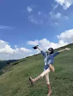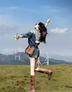 1. Running on the Grass Slope: Find an empty grass slope, run against the wind away from the camera, and have your friend capture the moment your skirt or hair flutters. The dynamic blur in the shot will perfectly encapsulate the joy of "escaping the city."