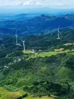 Huge white windmills turn slowly, becoming the most poetic touch in this landscape.