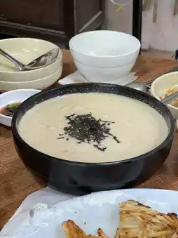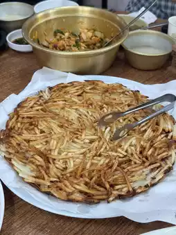 After the hike, I headed to a Korean pancake restaurant near the entrance of Sangdangsanseong to satisfy my appetite. This area is famous for its Korean pancakes and makgeolli (Korean rice wine), so there are plenty of great options to choose from!