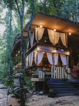 Baan Tarnchevee :: Mae Mae, Chiang Dao, Chiang Mai, accommodation located in the middle of the valley, along the stream, good atmosphere, accommodation has 4 rooms, Tarn Thada, Ampu, Wapi and Chonlathee, private bathroom, complete facilities, downstairs is a cafe zone, drinks, cakes and various pastries, dinner is a Khantoke set, breakfast is rice porridge, pork, tea, coffee, Ovaltine, complete, order additional drinks, travel from Chiang Mai city, takes 1 hour and 50 minutes, sit and listen to the sound of water flowing from the stream, the sound of nature therapy, put your feet in the water, heal your heart very well.