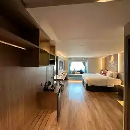 This time, I must say that I chose the right place to stay in the heart of Nimmanhemin at a very affordable price of 1,xxx. I recommend Mosse Hotel Nimman, located in the Nimmanhemin area of Chiang Mai. It is a 4-star hotel decorated in a modern and comfortable style. The rooms are spacious and clean, with soft and comfortable pillows and mattresses. There is an air purifier in the room, and the smart TV has Netflix in 4k, which is very clear. The WiFi is very strong, and the water pressure in the bathroom is excellent. Most importantly, you can see the view of Doi Suthep. The lobby area offers free snacks, refreshments, and fresh coffee 24 hours a day. For breakfast, there is a variety of options that change daily. This time, I was impressed with the friendly and helpful service of the staff. The hotel also has a small café for those who don't want to go out. There is convenient and spacious parking. Additionally, it is close to popular places such as One Nimman and Maya Chiang Mai, making it ideal for those who want to relax or travel for business in the city center. Highly recommended.