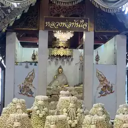 The highlight of this temple is "Luang Pho Tan Jai", which is well-known among the Mu Telu people. Because when you come to ask for a blessing, you must come back to make an offering with jasmine flowers. Therefore, you will see jasmine flowers everywhere, giving off a fragrant smell throughout the temple. If you want to bring jasmine flowers to worship and ask for blessings, you must buy them at the shop on the way up to the temple first, because they are not sold upstairs.