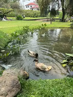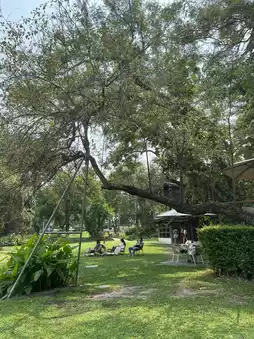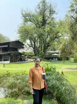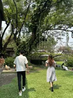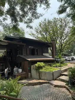 No matter where you look, you will see green trees everywhere. Who would have thought that this place is in the middle of the city? Because this is “Early Owls”. Early Owls is a garden cafe in the heart of Chiang Mai. Early Owls is a garden cafe with a shady atmosphere. This cafe is located in the middle of nature, surrounded by trees, grass and streams. It looks shady and cool under the shade of a big tree. There are also ducks playing in the water comfortably. The cafe is made of a 2-story wooden house, giving a warm feeling like being at home and blending in with nature. You can sit both inside and outside. The cafe area is spacious, you can walk around or take pictures. Some people sit and sip coffee while watching the ducks play in the water. Some people bring picnic mats to sleep on. The drinks and snacks are also delicious. Anyone who comes here will definitely want to stay all day. It is considered another cafe in Chiang Mai that you must visit.