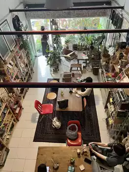 Anyone looking for a quiet and peaceful cafe to sit and read a book, this place is the answer. Because this is a shop that is both a cafe and a bookstore in one. This place is called "Rare Finds Bookstore and Cafe" located on Chang Mong Road, Chiang Mai Province. It is a cafe and bookstore in a shophouse with a total area of 2 floors. Inside the shop, there are many bookshelves. There is a small counter to order drinks. There will be tea, hot and cold cocoa. There are no snacks. Most people come to sit and read books or work. It is a quiet atmosphere that is very suitable for sitting and reading a book. The shop also has books for sale. There are both new and used books, rare books. In addition to books, the shop also sells decorations, clothes and miscellaneous items. It is considered another cafe and bookstore with a very good atmosphere. You can take pictures from many angles. The light is very good because the front of the shop is full of green trees. It is shady and very cool. Anyone looking for a cafe like this, this place is the answer.