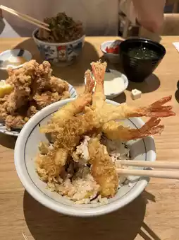 Hello, today I will review a restaurant. Today's restaurant will be a Japanese restaurant in Chiang Mai. This restaurant is called "Gin Udon". It is a fresh udon noodle restaurant that is made in front of the shop. It is located in the moat area, Chiang Mai. It is a small shop hidden in a building. It looks small, but when you enter the shop, it is not small at all. There are many tables to sit at. The recommended menu of the shop is mostly udon noodles, such as udon with mentaiko cream sauce, which is the shop's signature menu. It is creamy and rich. The homemade noodles are soft and chewy and made fresh every day. But today we chose a rice menu. We ordered fried chicken karaage, tempura shrimp, and sliced pork rice. Served with miso soup. I must say that every menu is delicious, especially the tempura shrimp that is fried hot and crispy. Eat it with Japanese rice. Each dish is not small. 2 people can eat and be very full. It is very good value for money. I recommend it.