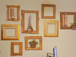 The check-in area is decorated with European-style furniture, and the picture frames on the wall and chandeliers on the ceiling