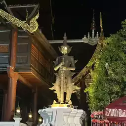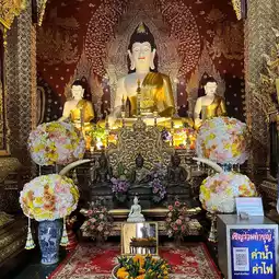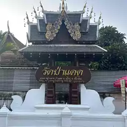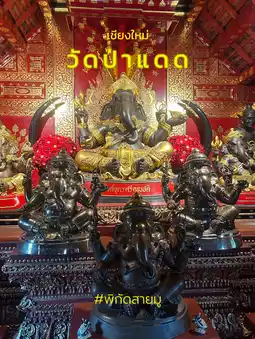 The highlight of Wat Pa Daet is the Wihan Luang Lai Kham, built in Lanna architecture, enshrining the main statue, Luang Pho Ta Wan. There is also the statue of Thao Wessuwan for you to worship in the temple. And what cannot be left unmentioned is the Wihan Phra Phikanet, enshrining the famous Ganesha statue named Uttarasri Kanapati, which means the one who grants success in the right way. The statue of Ganesha is made of blackened bronze, has four arms, holds a vajra, a noose, tusks, and a bowl of sweets. Most people like to come to perform a ceremony to ask for blessings from Ganesha. I must say that you have to book your offerings a month in advance. There will be a Brahmin Perform the fire aarti ceremony and anoint the forehead