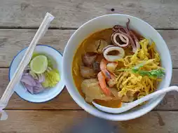 A restaurant where you can eat delicious Khao Soi, a curry noodle with coconut milk that you can eat in northern Thailand