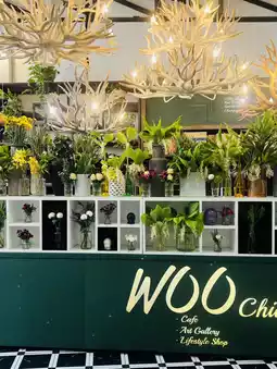 We bought chili sauce, fried pork skin (25 baht) and dried longan here. ❤️Finally we went to Woo for coffee. It was a beautiful coffee shop with many beautiful plants. The coffee and food were very good.