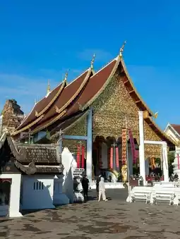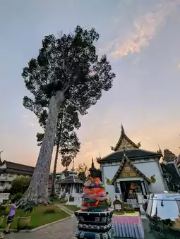 Admission requires a ticket, priced at 50 THB for adults. At the entrance, there is a sacred tree, a towering and majestic Dipterocarpus tree that is over a hundred years old. Other notable attractions within Wat Chedi Luang include the city pillar, the great stupa, and the reclining Buddha, all of which are worth seeing.
